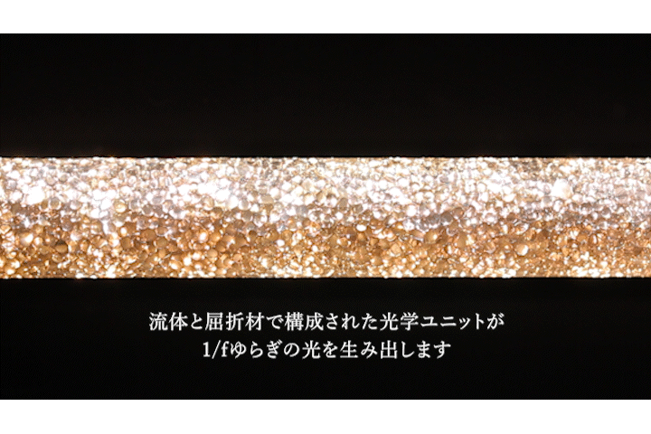 内部に配置された流体と屈折素材が、物理的な現象として水面のような揺らぎを